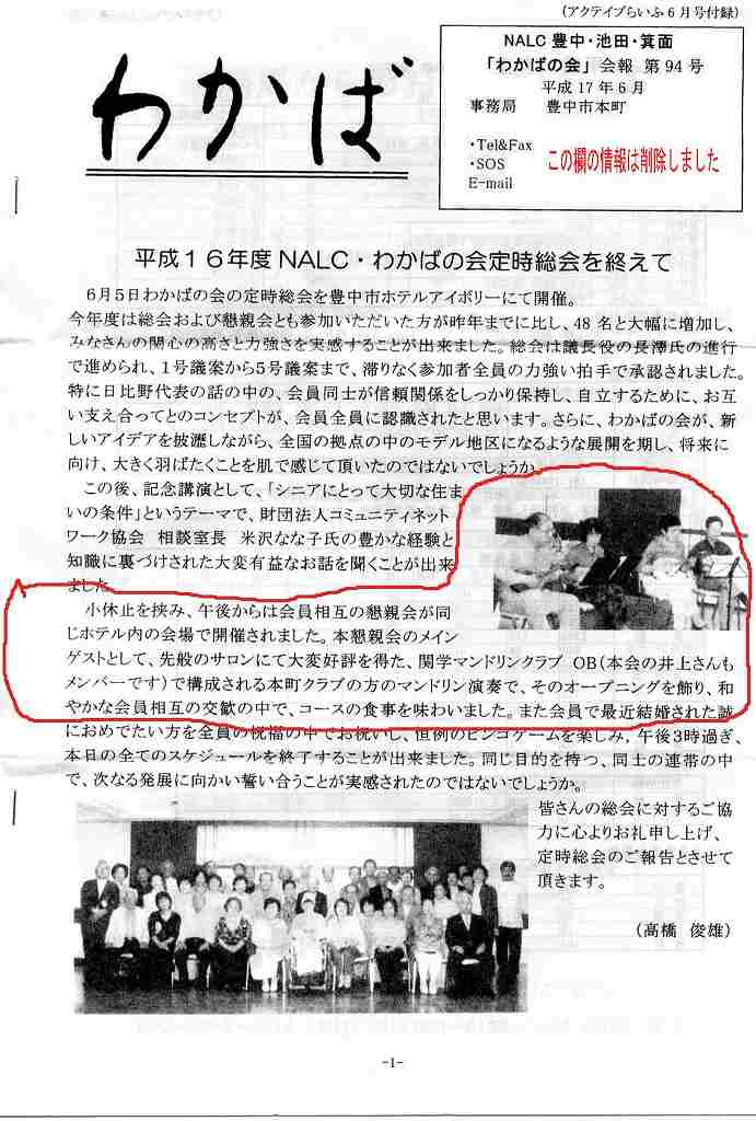 コンサートの模様が、早速、<わかばの会>会報に掲載されました