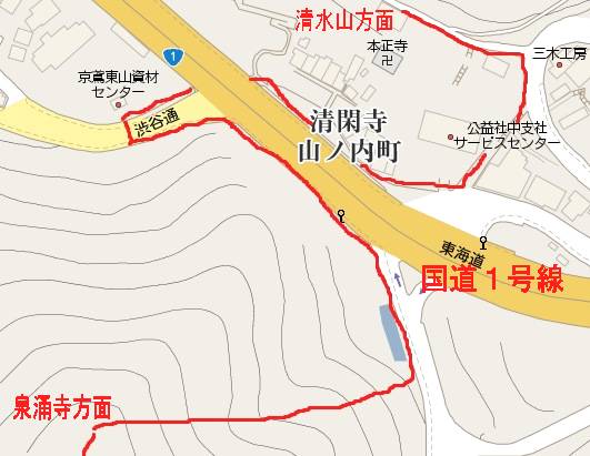 悲田院や東山道へではなく観音寺の方へ向かいますが、すぐに分岐